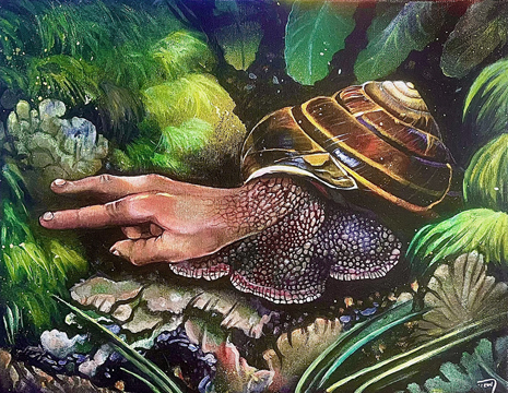 Peaceful Snail, acrylic & markers on canvas, 2018 |