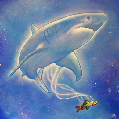 The Key Swallower, acrylic & markers on canvas, 2015 |